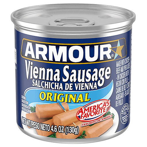 Armour Star Original Vienna Canned Sausage offers ready to eat sausage with great flavor. The canned Vienna sausages are made with chicken, beef and pork. This Vienna sausage can be eaten right out of the can, so you can enjoy this canned food as a ready to eat sausage snack. Try adding them to your favorite recipes, or serve them as an appetizer everybody will love. Store the canned sausage in your pantry so you’ll always have some delicious Vienna sausage on hand. You can also keep these sausages as survival food in your emergency disaster kit. Keep the small sausages refrigerated after opening to keep fresh for next time. Make any time Armour Star time.