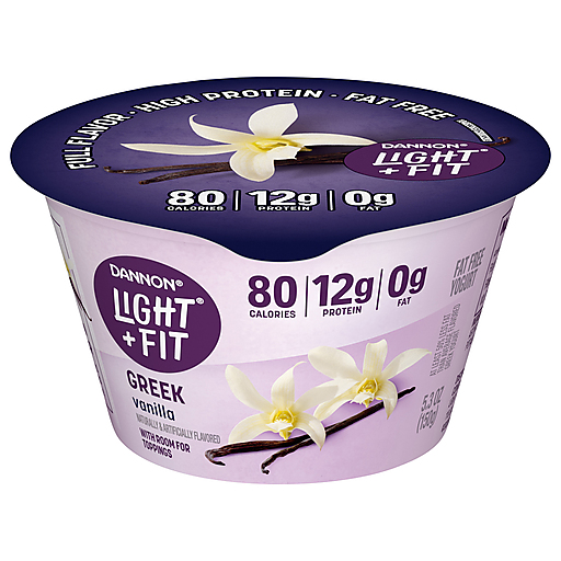Looking for a delicious fat free yogurt with crave-able, smooth and creamy vanilla flavor? Give your taste buds a reason to rejoice with a Dannon Light + Fit Vanilla Greek Fat Free Yogurt Cup. Every bite of this vanilla flavored, fat free yogurt makes it easy to crave healthy snacks with this delicious light yogurt brand. At Light + Fit, our goal is to help you do you while balancing a healthy diet by serving up some delightfully creamy Greek yogurt with sensational flavor. Our fat free Greek yogurt comes in single-serve cups, so you can live your life uninterrupted and enjoy them on the go. And with 80 calories and 12g of protein per 5.3 ounce serving, it’s a delicious, convenient option that helps you stick to a healthy routine. Pack a cup and enjoy it as a cold snack at work or as a post-workout healthy snack. Or, you can add some to your breakfast parfaits and yogurt smoothies or use some in your favorite recipes as a flavorful sub for baking ingredients. Plus, these vanilla flavored yogurt cups can transform into a bold, yummy whipped cream topping for desserts. Add some Light to your day, every day, with a single serving snack cup of Dannon Light + Fit Vanilla Greek Fat Free Yogurt.