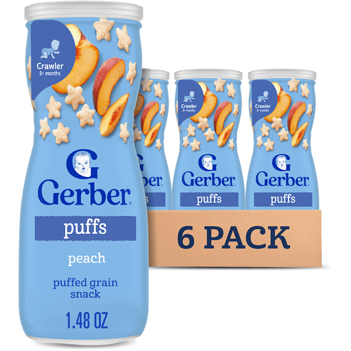 Gerber Stage 3 Baby Snacks, Peach Puffs, Puffed Grain Snack, Baby Led Feeding, 6PK