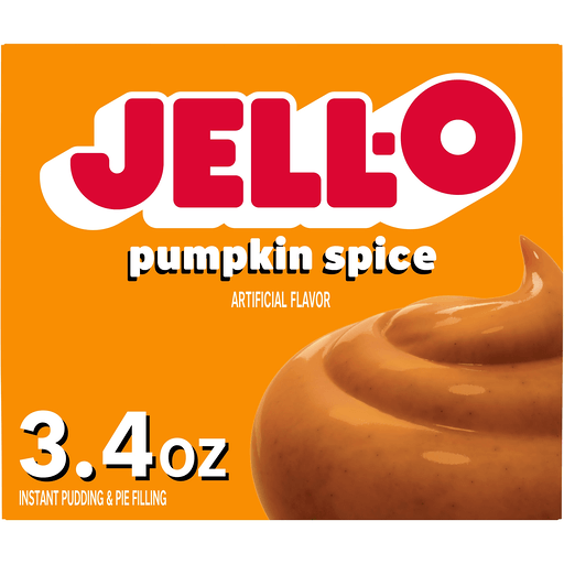 Snack happy. Jell-O Pumpkin Spice Artificially Flavored Instant Pudding & Pie Filling Mix tastes great whether you enjoy it as a treat or use it as an ingredient in your favorite dessert recipes. Add some wonder to your day with a delicious snack. Fun to make with your kids, our artificially flavored pumpkin spice pudding mix can also be used to create a poke cake, tasty crepes or pumpkin spice pudding and pie filling. Our artificially flavored pumpkin spice pudding is ready in as little as five minutes. Simply stir milk into the pudding mix and allow to set. Every Jell-O pudding mix comes packaged in a 3.4-ounce sealed pouch. Pudding fun in every bite.