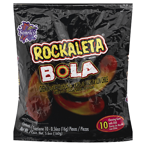 Chewing gum with chili. Artificial flavor. www.rockaleto.mx. www.Sonrics.com.mx.
