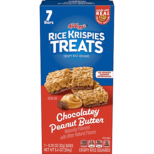 Enjoy the fun of everyday moments with the irresistible taste of Chocolatey Peanut Butter Rice Krispies Treats crispy rice squares. Create memorable moments with each and every delectable square that pulls apart to reveal chocolatey peanut butter goodness. Each bite starts with crispy, ooey gooeyness blended with real, creamy peanut butter and finishes with a melt-in-your-mouth milk chocolatey flavor; With a mix of sweet and salty, each bar is a satisfying, ready-to-eat treat wherever you go. A classically delicious snack, these individually wrapped crispy rice squares are perfect for sharing with friends and family. Keep at home or take a few with you for traveling, lunchtime, at the game, or pack for school snacks. Make someone's day by adding a few to goodie bags, gift baskets, and care packages. Satisfy your sweet craving with the goodness and on-the-go convenience of these chocolatey peanut butter crispy rice squares.