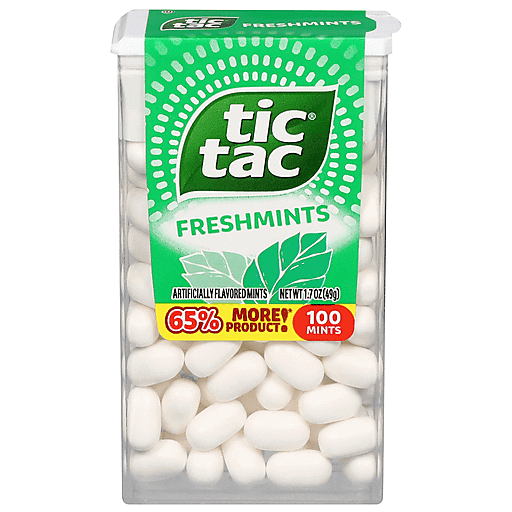 Enjoy the original minty taste of Tic Tac Freshmints. The 1.7-ounce pack is filled with small white mints ready to boost your confidence and refresh your day. With 100 layers of refreshing and delicious flavor, each pill in this pack of Tic Tac Freshmints is ready to refresh any moment. The portable pack fits perfectly in your pocket or purse for on-the-go sharing and refreshment. These gluten-free breath mints are refreshing and GMO-free! Tic Tac is an epic brand of beloved mints. Whether you enjoy one or the whole pack, you've got a variety of flavors and sizes to choose from. Take a ride on a Tic Tac.