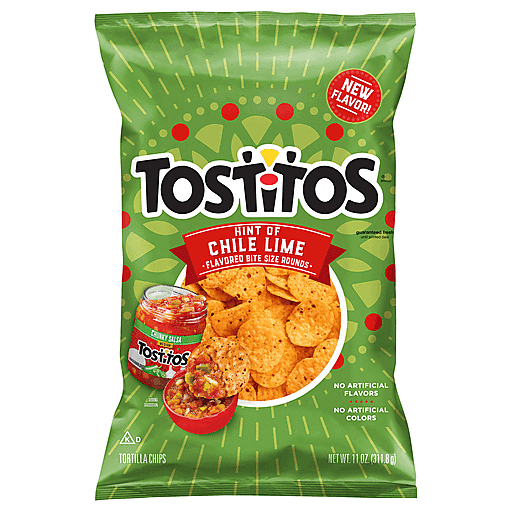 Tostitos Hint Of Chile Lime Flavored Bite Size Rounds Tortilla Chips 11 oz